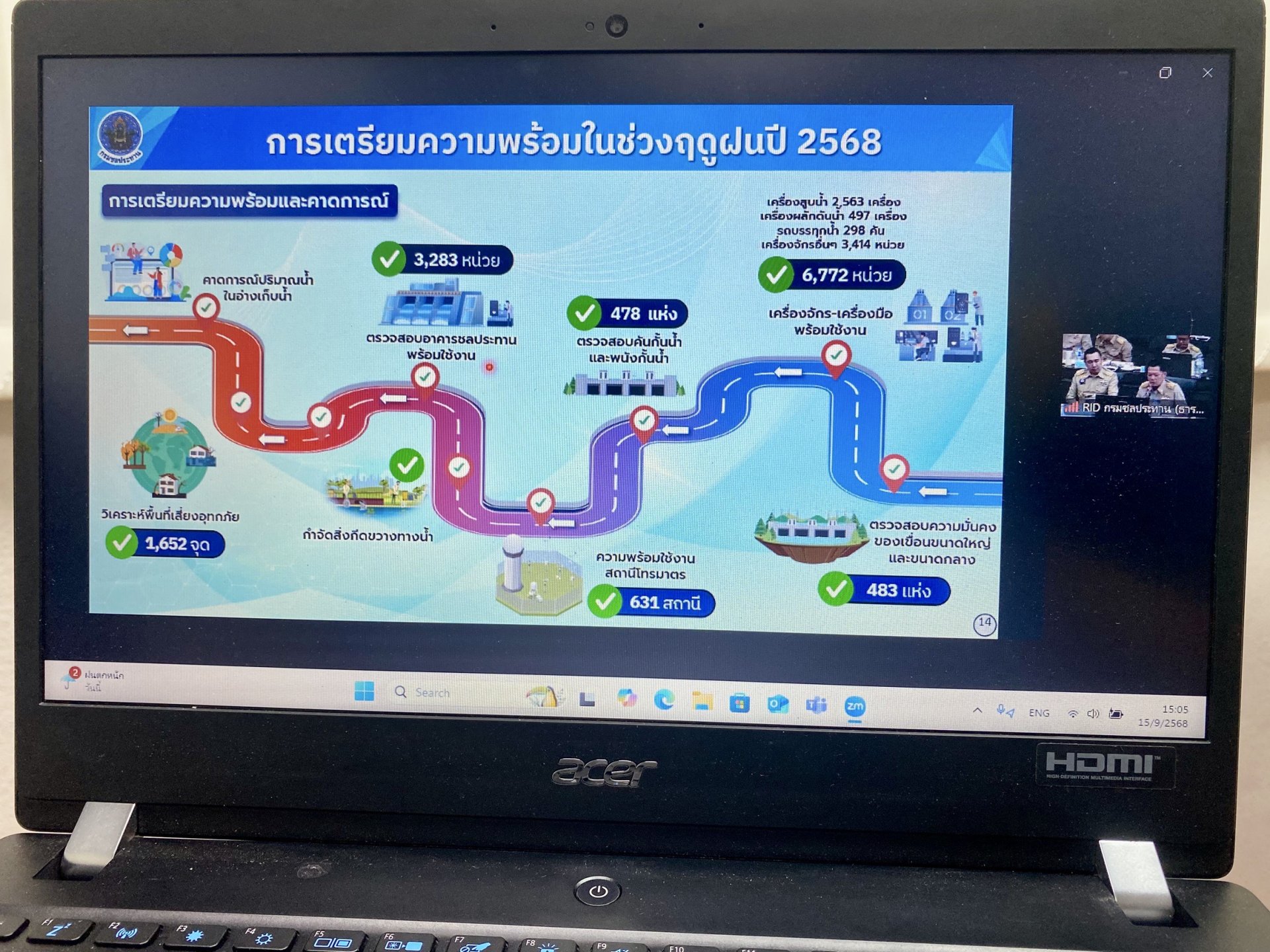 วันพุธที่ 24 กันยายน 2568 เวลา 10.00 น. นายสัมพันธ์ พิรกุลวานิช ผู้อำนวยการโครงการส่งน้ำและบำรุงรักษาสุโขทัย มอบหมายให้นายพิษณุ พิริยะวิศรุต หัวหน้าฝ่ายจัดสรรน้ำและปรับปรุงระบบชลประทาน เข้าร่วมประชุมติดตามสถานการณ์น้ำและการบริหารจัดการน้ำฤดูฝน ในเขตลุ่มน้ำเจ้าพระยา เพื่อรับฟังการบรรยายสรุปสถานการณ์น้ำในเขตลุ่มน้ำเจ้าพระยา การบริหารจัดการน้ำ และการคาดการณ์ปริมาณน้ำฝนในพื้นที่ พร้อมแนวทางการแก้ไขปัญหาในการบริหารจัดการน้ำตาม 9 มาตราการรับมือฤดูฝน ปี 2568 และการเตรียมเครื่องจักรเครื่องมือ ให้พร้อมรับมือกับสถานการณ์ในปัจจุบัน เพื่อบรรเทาผลกระทบให้กับราษฎรที่ประสบอุทกภัยให้ได้มากที่สุด ผ่านสื่ออิเล็กทรอนิกส์ (Application Zoom) จากห้องประชุม ธารทิพย์ 01 ชั้น 4 อาคาร 99 ปี หม่อมหลวงชูชาติ กำภู กรมชลประทาน ถนนสามเสน กรุงเทพมหานคร มายัง ณ โครงการส่งน้ำและบำรุงรักษาสุโขทัย