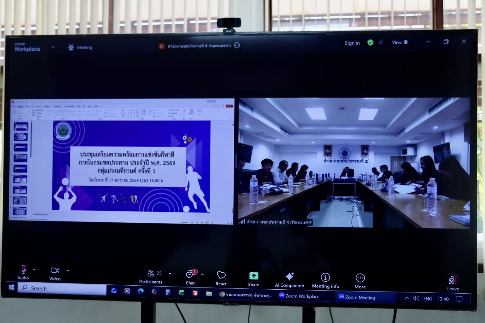 วันอังคารที่ 13 มกราคม พ.ศ. 2569 เวลา 13.30 น. นายสัมพันธ์ พิรกุลวานิช ผู้อำนวยการโครงการส่งน้ำและบำรุงรักษาสุโขทัย นายประมวล สากำ หัวหน้าฝ่ายวิศวกรรม และนางสาวสุภาพร ปัญญา หัวหน้าฝ่ายบริหารทั่วไป เข้าร่วมประชุมเตรียมความการแข่งขันกีฬาสีภายในกรมชลประทาน ประจำปี พ.ศ. 2569 กลุ่มสีม่วงนทีกานต์ ครั้งที่ 1 เพื่อให้การดำเนินงานจัดการแข่งขันกีฬาสีฯ เป็นไปด้วยความเรียบร้อย ผ่านสื่ออิเล็กทรอนิกส์ (Application Zoom) จาก ห้องประชุมนาคา สำนักงานชลประทานที่ 4 มายัง ณ ห้องประชุมโครงการส่งน้ำและบำรุงรักษาสุโขทัย