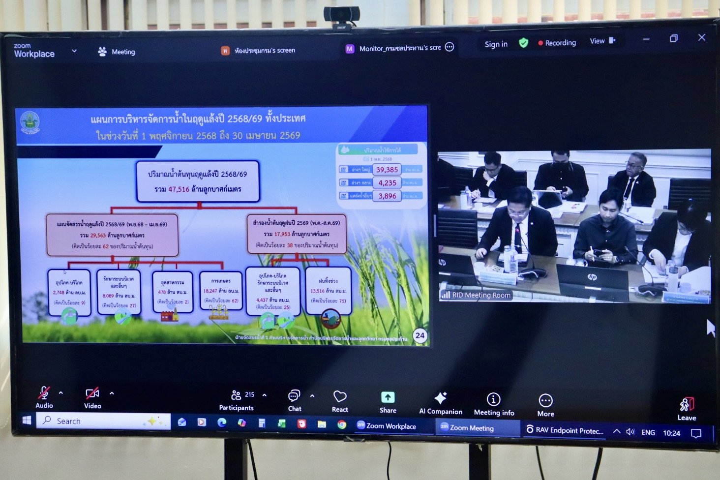 วันอังคารที่ 20 มกราคม พ.ศ. 2569 เวลา 09.00 น. นายสัมพันธ์ พิรกุลวานิช ผู้อำนวยการโครงการส่งน้ำและบำรุงรักษาสุโขทัย และนายพิษณุ พิริยะวิศรุต หัวหน้าฝ่ายจัดสรรน้ำและปรับปรุงระบบชลประทาน เข้าร่วมรับฟังประชุมหารือแนวทางการบริหารจัดการน้ำทรัพยากรน้ำ เพื่อรับทราบภารกิจเร่งด่วน สำคัญด้านทรัพยากรน้ำ ที่จำเป็นต้องอาศัยความร่วมมือและการบูรณาการดำเนินการระหว่างหน่วยงาน ทั้งแลกเปลี่ยนความคิดเห็น ข้อเสนอแนะแนวทาง การดำเนินงานที่เกี่ยวข้อง และรับทราบประเด็นปัญหา อุปสรรค ในการดำเนินงานด้านทรัพยากรน้ำ เพื่อนำข้อมูลที่ได้รับไปประกอบพิจารณาเชิงนโยบายและบูรณาการในระดับภาพรวมต่อไป โดยมีนายชยันต์ เมืองสง เลขาธิการสำนักงานทรัพยากรน้ำแห่งชาติ (สทนช.) เป็นประธานการประชุม ผ่านสื่ออิเล็กทรอนิกส์ (Application Zoom) จาก ห้องประชุมกรมชลประทาน สามเสน มายัง ณ ห้องประชุมโครงการส่งน้ำและบำรุงรักษาสุโขทัย