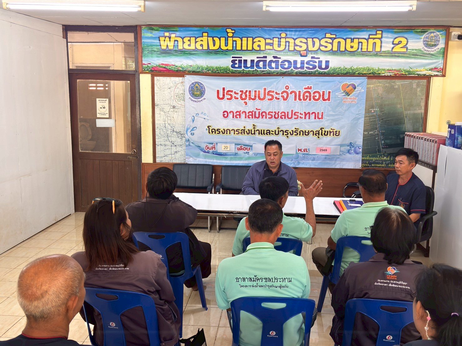 วันอังคารที่ 20 มกราคม พ.ศ. 2569 เวลา 09.30 นายสัมพันธ์ พิรกุลวานิช ผู้อำนวยการโครงการส่งน้ำและบำรุงรักษาสุโขทัย มอบหมายให้ นายวรการ บุญทา หัวหน้าฝ่ายส่งน้ำและบำรุงรักษาที่ 2 และนายวิมล คำคุ้ม พนักงานเครื่องจักรกล ช 3 จัดการประชุมอาสาสมัครชลประทาน ในเขตพื้นที่ฝ่ายส่งน้ำและบำรุงรักษาที่ 2 ประจำเดือนมกราคม 2569 เพื่อชี้แจงการปฏิบัติงานและรับฟังปัญหาและอุปสรรค โดยมีอาสาสมัครชลประทานและเจ้าหน้าที่ผู้เกี่ยวข้องเข้าร่วมประชุม ณ ฝ่ายส่งน้ำและบำรุงรักษาที่ 2 อำเภอศรีนคร จังหวัดสุโขทัย